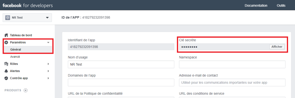 - Cliquez simplement sur Afficher dans le champ Clé secrète et confirmez votre mot de passe Facebook.