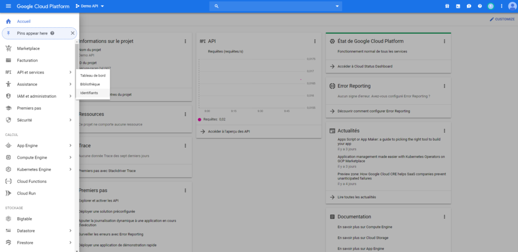 Rendez-vous dans « API et Services », comme sur l’illustration.