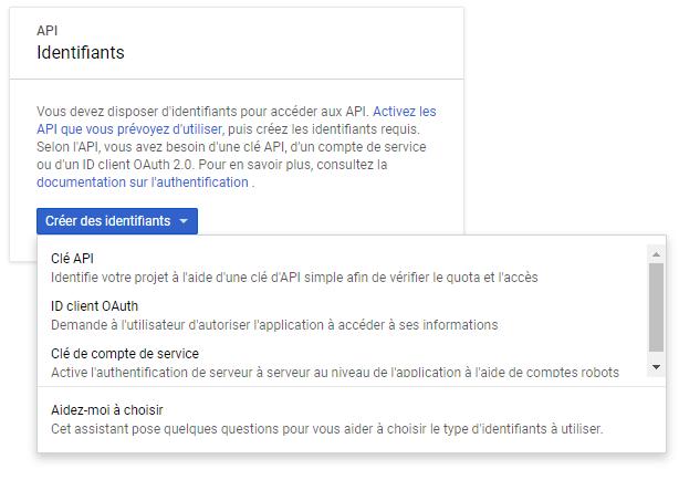 Sur la page « Identifiants », il vous faut créer une clé API :