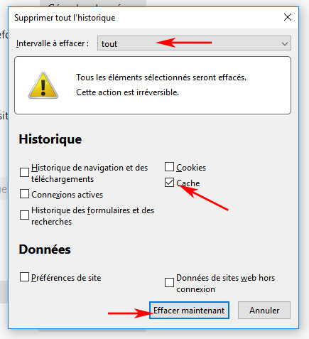 - Décochez toutes les cases sauf ‘Cache’ dans la partie Historique.
