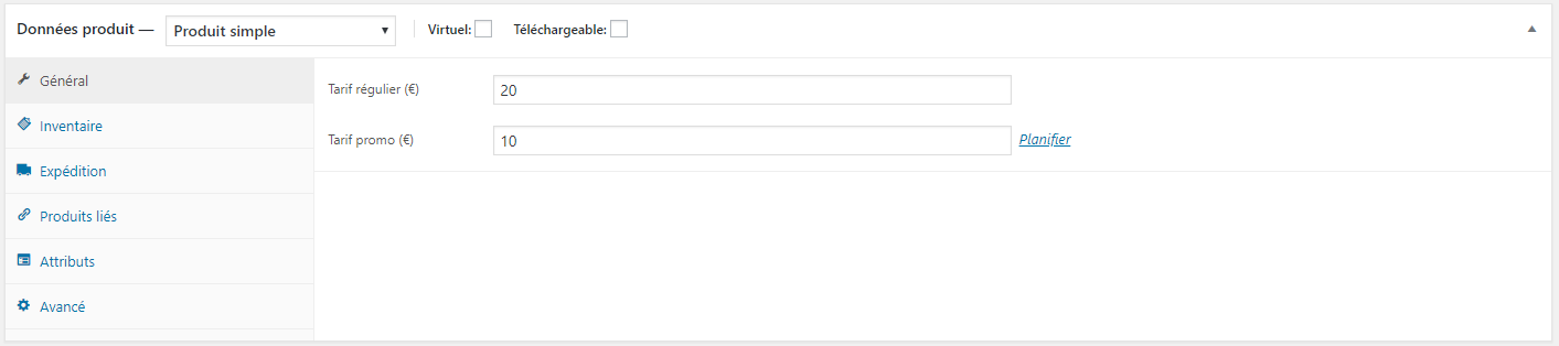 Le type de produit (simple, variable, …), le prix, les attributs et variations. Toutes les données renseignées à la création du produit peuvent être modifiées (cf. La création de produit).
